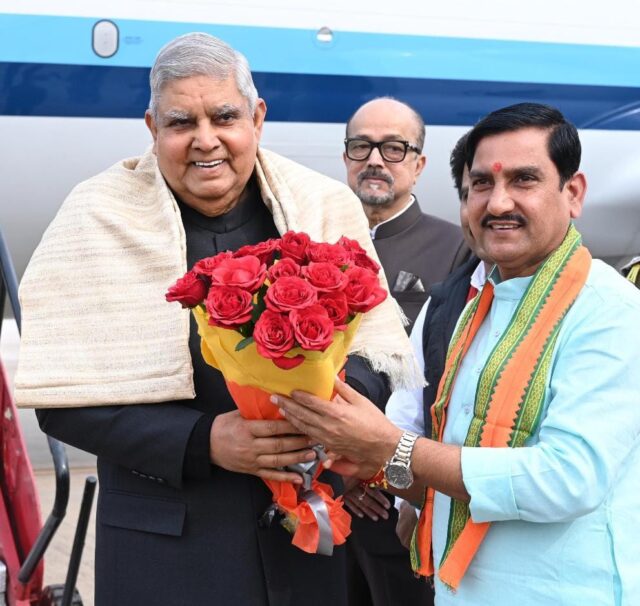 उप राष्ट्रपति जगदीश धनखड़ का माना विमानतल में आत्मीय स्वागत