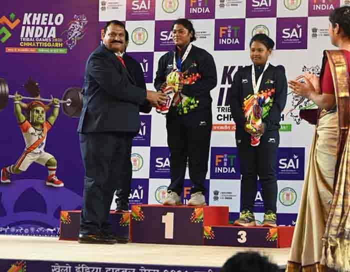 रायपुर। खेलो इंडिया ट्राइबल गेम्स 2026 में छत्तीसगढ़ की बेटी निकिता ने राज्य को पहला स्वर्ण पदक दिलाकर इतिहास रच दिया है। राजधानी रायपुर स्थित पंडित रविशंकर शुक्ल विश्वविद्यालय परिसर में आयोजित इस प्रतिष्ठित प्रतियोगिता में निकिता ने महिला 77 किलोग्राम भारोत्तोलन वर्ग में उत्कृष्ट प्रदर्शन करते हुए कुल 160 किलोग्राम वजन उठाकर प्रथम स्थान हासिल किया।