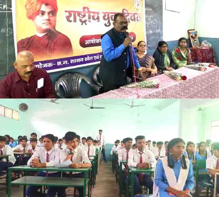 दुर्ग। युवा कार्यकम खेल मंत्रालय के स्वायत्त संस्था मेरा युवा भारत द्वारा स्वामी विवेकानंद के जन्मोत्सव पर 12 जनवरी 2024 को पूरे राष्ट्र में राष्ट्रीय युवा दिवस का आयोजन किया जा रहा है। खेल एवं युवा कल्याण विभाग जिला दुर्ग द्वारा नेशनल स्कूल दुर्ग में स्वामी विवेकानंद जी के जन्मोत्सव पर राष्ट्रीय युवा दिवस का आयोजन किया गया, जिसमें 150 युवाओं ने भाग लिया । सहायक संचालक से मिली जानकारी अनुसार कार्यक्रम के मुख्य अथिति प्रचार्य नेशनल स्कूल विद्यालय दुर्ग श्रीमती मधु गोस्वामी, अध्यक्षता सहायक संचालक खेल एवं युवा कल्याण विभाग श्री विलियम लकड़ा सभी अथितियों ने स्वामी विवेकानंद जी की छाया चित्र पर दीप प्रजवलन कर माल्या अर्पण किया और सभी युवाओं ने स्वामी विवेकानंद जी जयंती पर अपने विचार प्रकट किए। कार्यक्रम का संचालन श्री प्रदीप कुमार भुवाल ने किया।