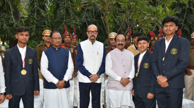 रायपुर :गणतंत्र दिवस के अवसर पर आज शाम यहां राजभवन में स्वागत समारोह का आयोजन किया गया। राज्यपाल श्री रमेन डेका ने सभी अतिथियों को गणतंत्र दिवस की हार्दिक शुभकामनाएं दी। समारोह में मुख्यमंत्री श्री विष्णुदेव साय ने राज्यपाल को पुष्पगुच्छ भेंटकर गणतंत्र दिवस की बधाई एवं शुभकामनाएं दी। उप मुख्यमंत्री श्री अरूण साव, विधानसभा अध्यक्ष डॉ. रमन सिंह, सांसद रायपुर श्री बृजमोहन अग्रवाल ने भी राज्यपाल श्री डेका को गणतंत्र दिवस की हार्दिक शुभकामनाएं दी। समारोह में जनप्रतिनिधिगण, पद्मश्री पुरस्कृत, राज्य शासन के वरिष्ठ अधिकारी, सेना एवं पुलिस के अधिकारी, राष्ट्रपति पदक से अलंकृत पुलिस अधिकारी, विभिन्न विश्वविद्यालयों के कुलपतिगण, राज्य वीरता पुरस्कार प्राप्त बच्चे, राज्य के उत्कृष्ट खिलाड़ी, गणमान्य नागरिक एवं मीडिया के प्रतिनिधि उपस्थित थे। राज्यपाल श्री डेका को सभी ने गणतंत्र दिवस की हार्दिक शुभकामनाएं दी।