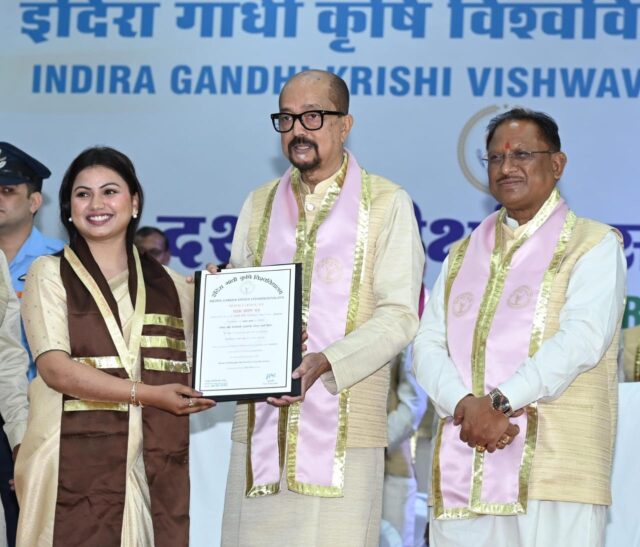 राज्यपाल श्री रमेन डेका और मुख्यमंत्री श्री विष्णु देव साय ने इंदिरा गांधी कृषि विश्वविद्यालय रायपुर के सभागार में आयोजित भव्य एवं गरिमामय दीक्षांत समारोह में शैक्षणिक वर्ष 2022-23 एवं 2023-24 तक उत्तीर्ण छात्र-छात्राओं को पदक एवं उपाधियां वितरित की गई। मेधावी विद्यार्थियों को 16 स्वर्ण, 18 रजत एवं 4 कास्य पदक प्रदान किए गए। साथ ही लगभग 4200 विद्यार्थियों को ग्रेजुएशन, पोस्ट ग्रेजुएशन और पी.एच.डी की उपाधि प्रदान की।