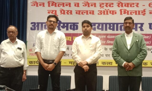 भिलाई नगर। सिविक सेंटर स्थित महात्मा गांधी कलामंदिर में रविवार को डीएम कॉर्डियोलॉजिस्ट द्वय डॉ सुलभ चंद्राकर तथा डॉ गौरव त्रिपाठी की अगुवाई में आकस्मिक हृदयाघात पर परिचर्चा आयोजित की गई। भारत विकास परिषद, जैन मिलन व जैन ट्रस्ट, सेक्टर 06 तथा न्यू प्रेस क्लब ऑफ भिलाई नगर के संयुक्त तत्वावधान में आयोजित इस परिचर्चा में आकस्मिक हृदयाघात के मामलों खास कर युवाओं में इस तरह के बढ़ते मामलों के संभावित कारणों, सावधानियों तथा बचाव के उपायों को दोनों हृदयरोग विशेषज्ञों ने प्रभावी तरीके से रखा। साथ ही हृदयघात की आपातकालीन स्थिति में मरीजों और आकस्मिक हृदयाघात के कारण मृत्यु से कैसे बचाया जाए, इस पर गहन चर्चा करने के साथ-साथ विषय से संबंधित सवालों के जवाब भी दिए गए।