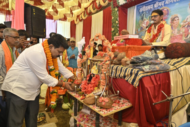 रायपुर : उपमुख्यमंत्री श्री विजय शर्मा कबीरधाम जिला के ग्राम मदनपुर में आयोजित भागवत गीता महापुराण में हुए शामिल