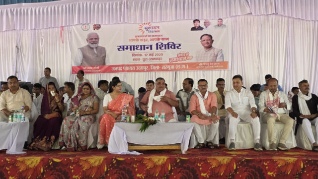रायपुर : छत्तीसगढ़ शासन द्वारा हितग्राही मूलक योजनाओं में पारदर्शिता लाने और आम नागरिकों की मांग और शिकायतों का निराकरण करने के उद्देश्य से मुख्यमंत्री श्री विष्णु देव साय की पहल पर सुशासन तिहार मनाया जा रहा है। सुशासन तिहार के अंतिम चरण में अम्बिकापुर के मेंड्राकला, लखनपुर के अंधला और उदयपुर के रामगढ़ में समाधान शिविर आयोजित हुआ। जिसमें सुशासन तिहार के तहत प्रथम चरण में प्राप्त आवेदनों का निराकरण करते हुए में ग्रामीणों की शिकायतों और मांगों का समाधान कर जानकारी साझा की गई। कार्यक्रम में अम्बिकापुर विधायक श्री राजेश अग्रवाल, राज्य युवा आयोग के अध्यक्ष श्री विश्वविजय सिंह तोमर, जिला पंचायत सदस्य श्रीमती पायल विश्वविजय सिंह तोमर, जिला पंचायत सदस्य श्रीमती राधा रवि, श्री भारत सिंह सिसौदिया सहित स्थानीय जनप्रतिनिधि कलेक्टर श्री विलास भोसकर, जिला पंचायत सीईओ श्री विनय कुमार अग्रवाल अपर कलेक्टर श्री सुनील नायक सहित प्रशासनिक अधिकारी मौजूद रहे।