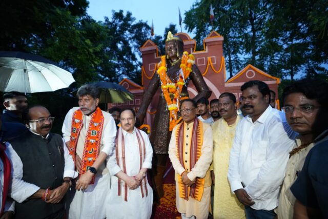 केंद्रीय स्वास्थ्य मंत्री जगत प्रसाद नड्डा ने वीरांगना रानी दुर्गावती की प्रतिमा पर किया माल्यार्पण