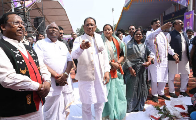 रायपुर : मुख्यमंत्री विष्णु देव साय द्वारा आज बलरामपुर-रामानुजगंज जिले के राजपुर में आयोजित ‘धरती आबा जनजातीय ग्राम उत्कर्ष अभियान’ के शुभारंभ के अवसर पर आयोजित कार्यक्रम में 192 करोड़ 60 लाख रुपए की लागत के 108 विकास कार्यों का भूमिपूजन, शिलान्यास एवं लोकार्पण किया गया। उन्होंने जिलेवासियों को विकास कार्याे के लिए शुभकामनाएं दी। विकास कार्याे में 97 लाख 57 हजार रुपए के 5 कार्यों का लोकार्पण तथा 191 करोड़ 63 लाख रुपए के 103 कार्यों का भूमिपूजन शामिल है।