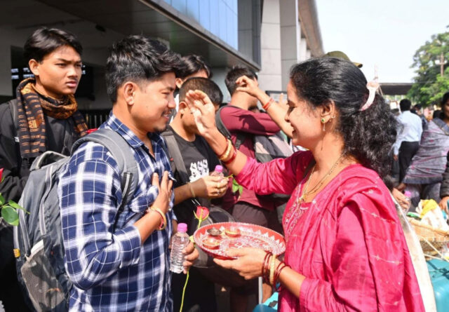 रायपुर : जनजातीय गौरव दिवस पर राजधानी रायपुर में 14-15 नवम्बर को आयोजित दो दिवसीय अंतरराज्यीय आदिवासी नृत्य उत्सव में असम के कलाकार रेट-किनॉन्ग और अरुणाचल प्रदेश का दल गेह पदम ए ना-न्यी लोक नृत्य प्रस्तुत करेंगे। उत्सव में शामिल होने रायपुर पहुंचने पर रेलवे स्टेशन पर कलाकारों का तिलक लगाकर स्वागत किया गया।